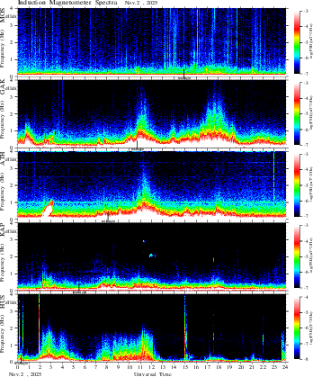 spectrum (frequency in linear scale, color in nT