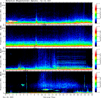 spectrum (frequency in linear scale, color in nT