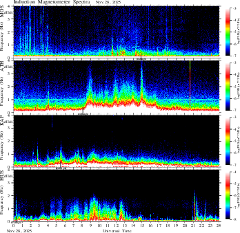 spectrum (frequency in linear scale, color in nT