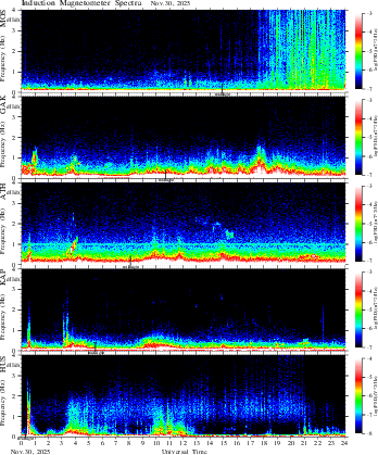 spectrum (frequency in linear scale, color in nT