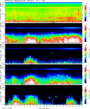 frequency in linear scale, color in nT