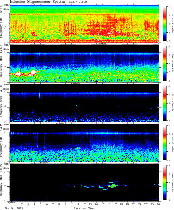 frequency in linear scale, color in nT