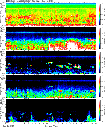 frequency in linear scale, color in nT