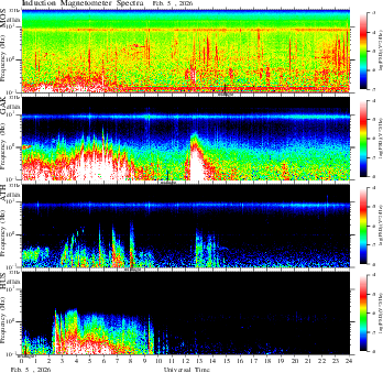 frequency in linear scale, color in nT
