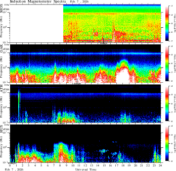 frequency in linear scale, color in nT