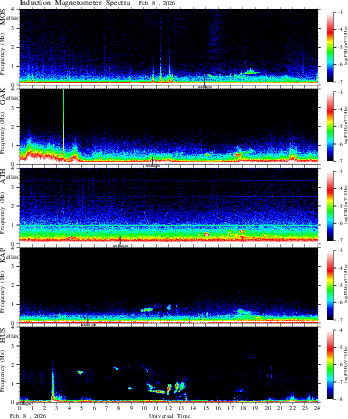 spectrum (frequency in linear scale, color in nT