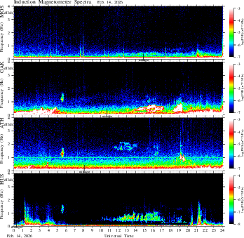 spectrum (frequency in linear scale, color in nT