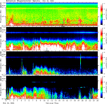 frequency in linear scale, color in nT