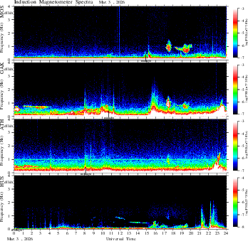 spectrum (frequency in linear scale, color in nT