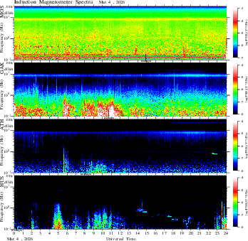 frequency in linear scale, color in nT