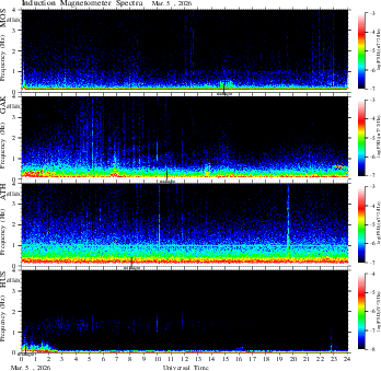 spectrum (frequency in linear scale, color in nT