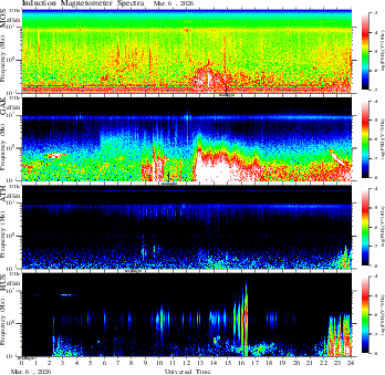 frequency in linear scale, color in nT