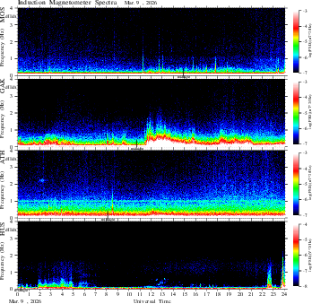 spectrum (frequency in linear scale, color in nT