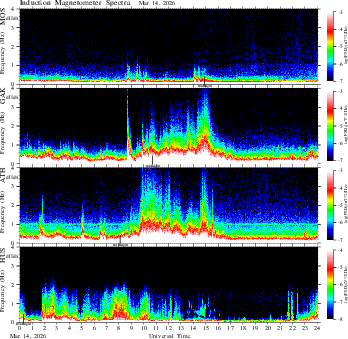 spectrum (frequency in linear scale, color in nT