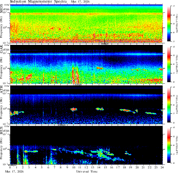 frequency in linear scale, color in nT