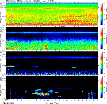 frequency in linear scale, color in nT