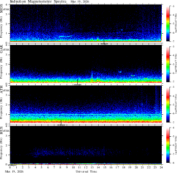 spectrum (frequency in linear scale, color in nT