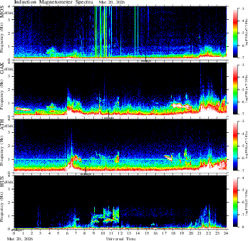 spectrum (frequency in linear scale, color in nT