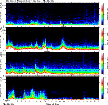 spectrum (frequency in linear scale, color in nT