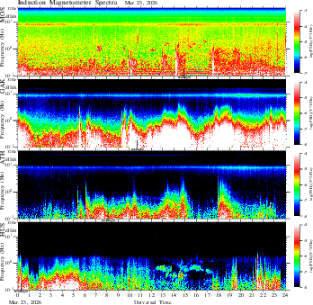 frequency in linear scale, color in nT