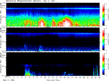 frequency in linear scale, color in nT