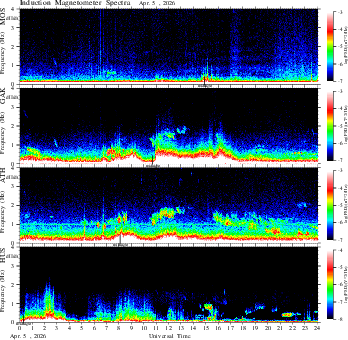 spectrum (frequency in linear scale, color in nT
