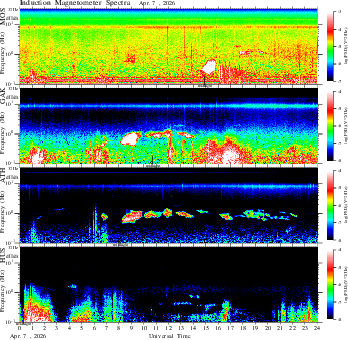 frequency in linear scale, color in nT