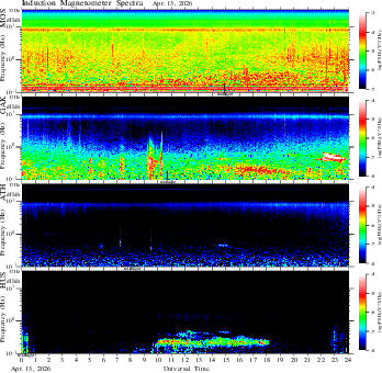 frequency in linear scale, color in nT