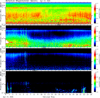 frequency in linear scale, color in nT